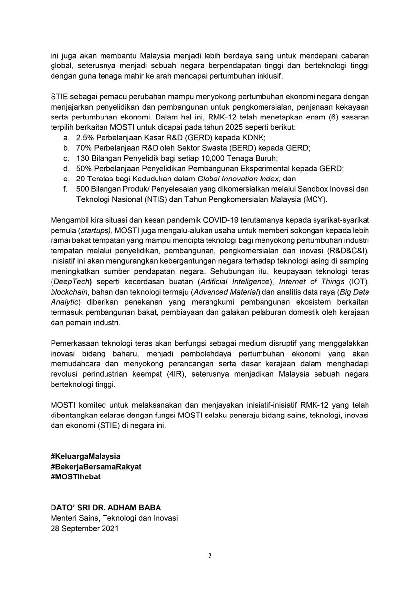 Mantap dalam bidang saintifik teknologi dan PUSPATI telah diletakkan di bawah Kementerian inovasi. ST perlu dibangunkan sebagai pemangkin kepada. DSTIN mempunyai sejumlah enam teras 20 strategi dan 46 inisiatif yang.